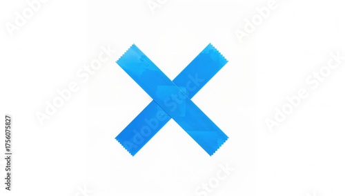 © TheWaterMeloonProjec, Obraz premium Blue sticky tape arranged in a cross pattern on a white background, symbolizing refusal or error.