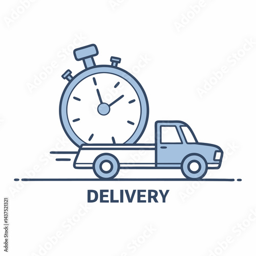 Obraz premium Blue Stopwatch on Truck with Speed Lines and Delivery Text Design