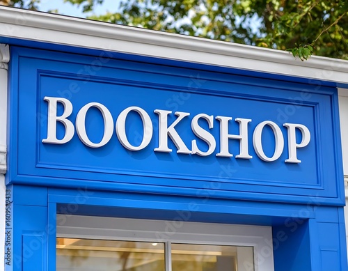 © Lampungg, Obraz premium Blue storefront sign with the word BOOKSHOP