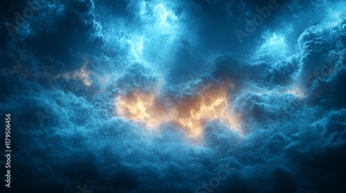 Fototapeta premium Blue storm clouds with fiery light in the center. Generative AI
