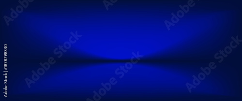 © Aril, Fototapeta premium Blue studio gradient background. Abstract empty room backdrop. 3d vector cool light texture. Luxury neon lights limbo bg. Dark festive color bg. Modern photo studio spotlight glow podium gradation