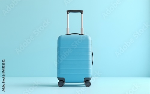 Fototapeta premium Blue suitcase on pastel blue background. minimal travel concept. 3d render. High quality