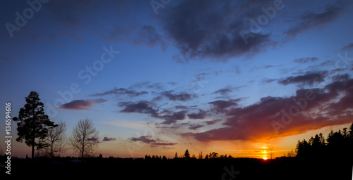 © Eetu, Fototapeta premium Blue sunset with tree silhouette