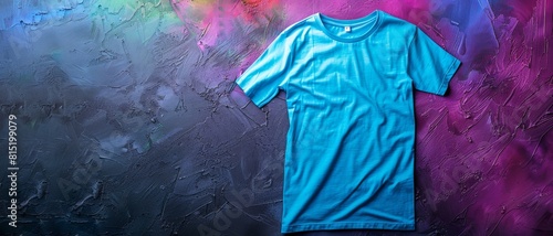 Fototapeta premium Blue t-shirt mock up. Flat lay T-shirt mockup.