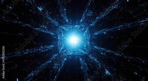 © StockWorld, Fototapeta premium Blue Tech Tunnel: Light Speed Data Stream, Futuristic Network, Digital Vortex, Abstract Technology, Connection, Cyberpunk Vision