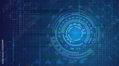 Obraz premium Blue technology background with digital circle and glitch effect