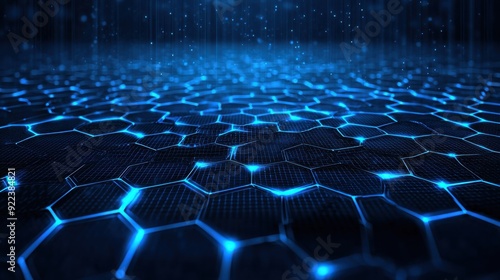 Obraz premium Blue technology background with hexagon grid, digital network and connection...