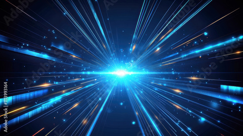 © Chrixxi, Fototapeta premium Blue Technology Background with Light Rays and Glowing Particles - Futuristic Digital Design