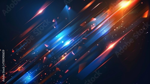 © fledermausstudio, Fototapeta premium Blue technology background with motion neon light effect