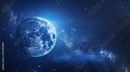 Obraz premium Blue_technology_Earth_planet_starry_sky_gradient
