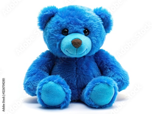 © Kaveepat, Obraz premium Blue Teddy Bear Macro Closeup White Background Low Angle