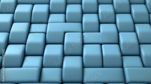 © stockpro, Obraz premium Blue Textured Surface with Interlocking Cubes and Patterns