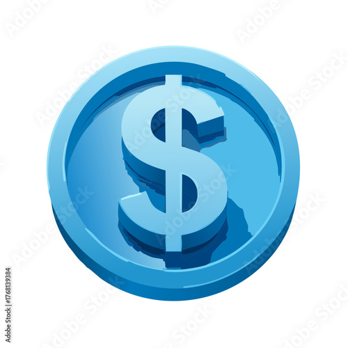 Fototapeta premium Blue Three Dimensional Dollar Sign Coin Symbol Icon