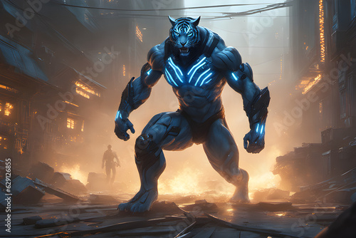 © Jinbaek, Naklejka premium blue tiger man Generative AI