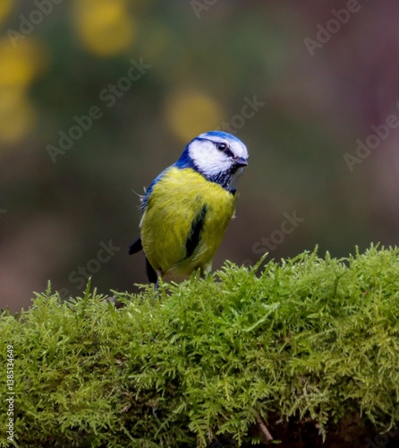 Fototapeta premium Blue tit bird on green moss
