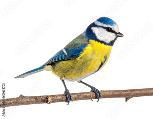© MstGulzan, Fototapeta premium Blue Tit Bird Perched with Fluffy Feathers Isolated on White Background PNG
