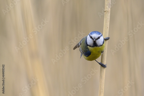 © Sander Meertins, Fototapeta premium Blue tit closeup in the reeds