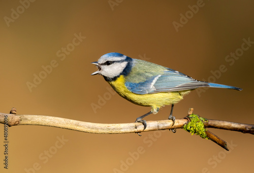 Fototapeta premium Blue tit ( Cyanistes caeruleus ) close up