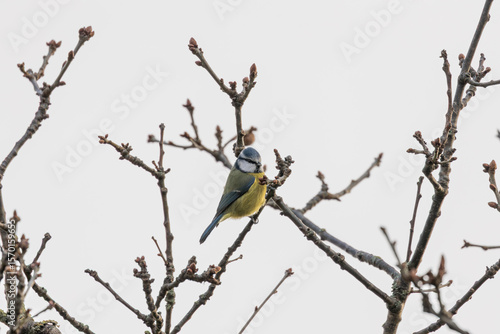Naklejka premium Blue Tit (Cyanistes caeruleus), common across Europe, spotted in Phoenix...