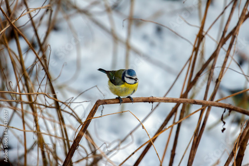 Naklejka premium Blue Tit (cyanistes caeruleus) perching on a twig