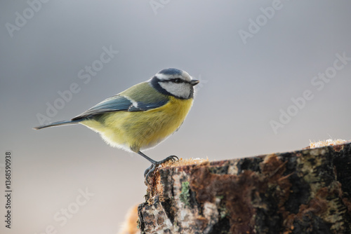 © Jarosław Kochnio, Obraz premium Blue tit on a birch stump