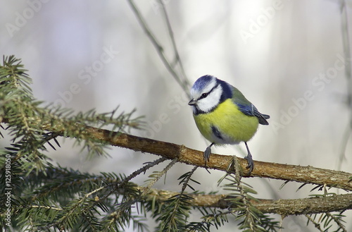 © Foton, Naklejka premium Blue tit on a branch. Cyanistes caeruleus.