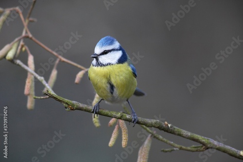 Obraz premium Blue Tit, parus caeruleus, Adult standing on Branch, Normandy