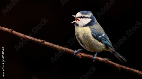 © Tim Kerkmann, Obraz premium Blue Tit Singing on Branch