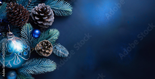 Naklejka premium Blue Toned Winter Decoration with Pine Cones and Ornaments