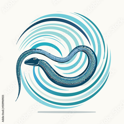 © cloud7days, Obraz premium Blue-Tongue Skink in a Whimsical Scene with Vibrant Swirl Motions All Around.
