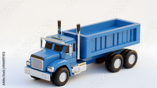 © 用脚 开门, Fototapeta premium Blue toy dump truck on a light background
