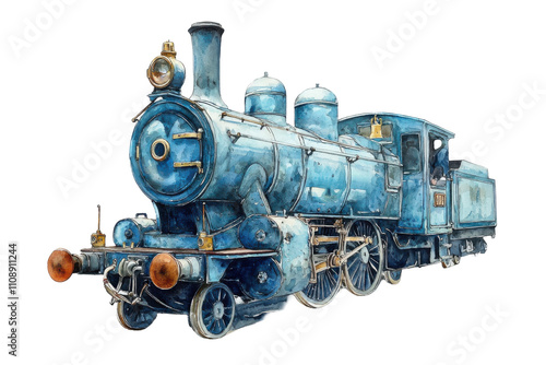 © Rangga Bimantara, Fototapeta premium Blue Train Watercolor Painting Isolated on PNG Transparent Background