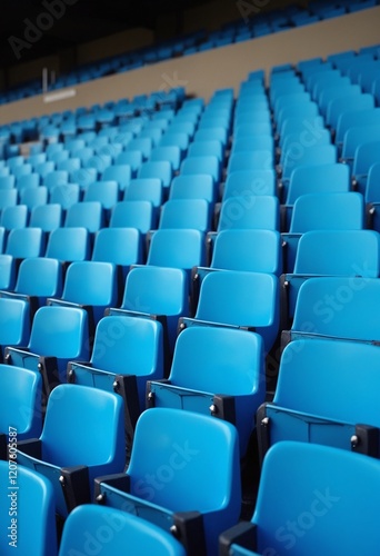 © Giuseppe Cammino, Fototapeta premium Blue tribunes. seats of tribune on sport stadium. empty outdoor arena. concept of fans. chairs for audience. cultural environment concept. color and symmetry. empty seats. modern stadium