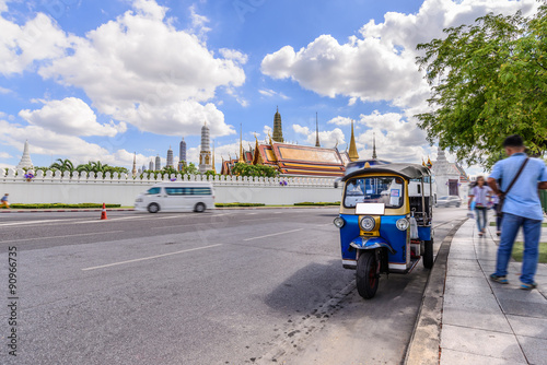 Naklejka premium Blue Tuk Tuk, Thai traditional taxi in Bangkok Thailand.