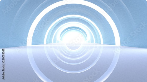 © Carlo Toffolo, Obraz premium Blue tunnel with white lights - 3D rendering
