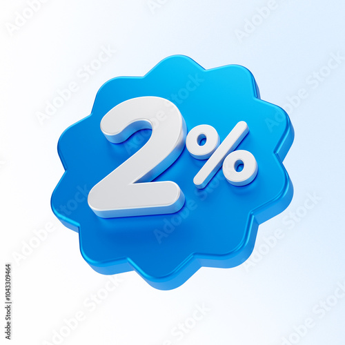 © Sabir, Fototapeta premium blue two percent or 2 % discount number isolated on white background. 3d render