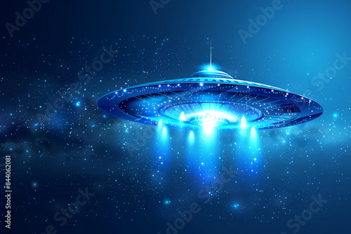 Obraz premium Blue UFO Hovering Over Starry Night Sky