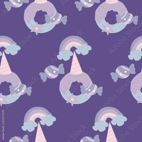 Obraz premium blue unicorn donut, in a seamless pattern design