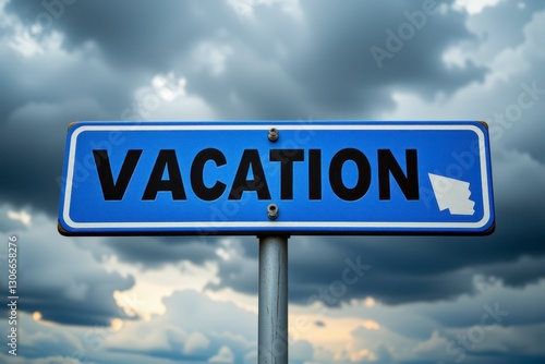 Obraz premium Blue Vacation Signpost Against Cloudy Sky Travel Concept Holiday Destination...