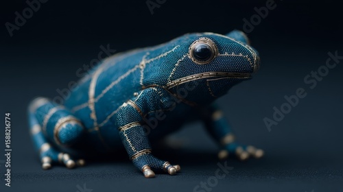 © fotogurme, Obraz premium Blue velvet frog sculpture reminiscent of steampunk whimsy, ideal for International Frog Day, captivating intricate textile artistry