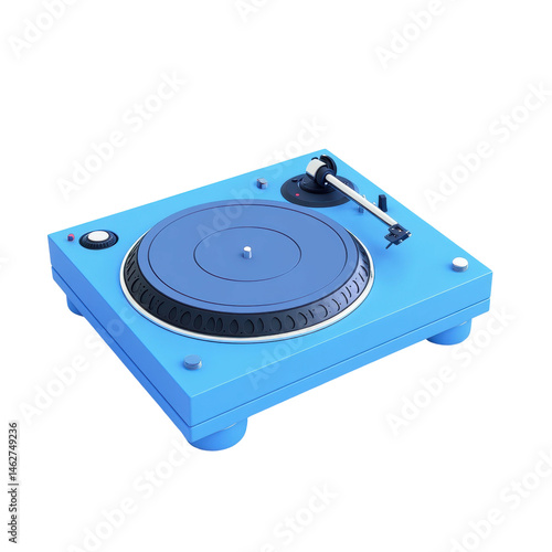 Fototapeta premium Blue vintage turntable with stylus, cut out - stock png.