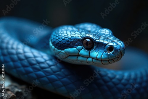 Fototapeta premium Blue viper snake's sharp head and pointed snout, textured scales, and...