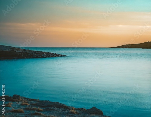 © Artbi, Fototapeta premium Blue water background. Art blue water summer background