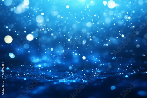 Fototapeta premium Blue water bokeh, sparkle, night, abstract background, design