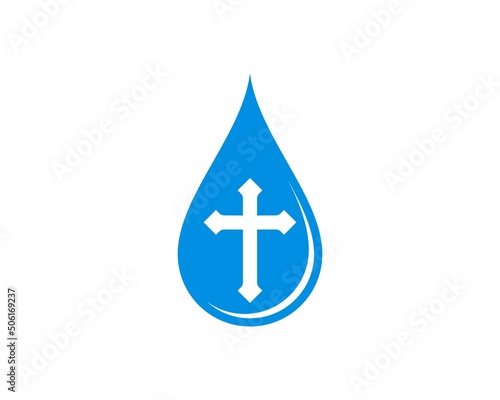 © DitaTiara, Obraz premium Blue water drop with christian religion symbol inside