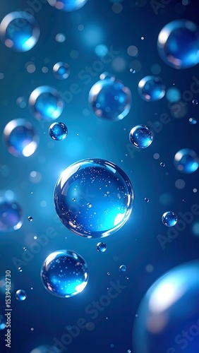 © Hafidz, Obraz premium Blue Water Droplets Abstract Background.