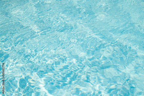© Korneliia, Obraz premium Blue water reflection. Blue pool waves. Swimming pool. Water surface. Blue water texture. Close up blue water surface. Textured background.