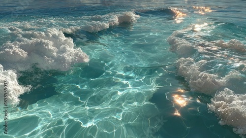 © Shoaib, Fototapeta premium Blue water ripple surface with sunlight reflection texture background