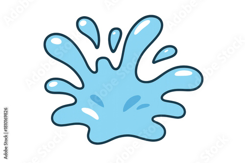 Obraz premium Blue water splash cartoon vector illustration, liquid drop effect creating a...