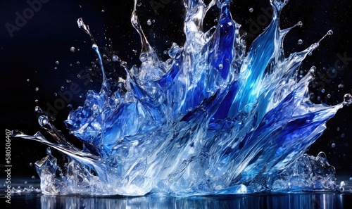 Fototapeta premium Blue Water splashes on black - abstract freeze frame, Generative AI.